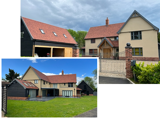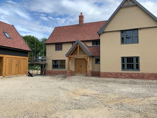 Our largest house constructed to date. A bespoke 4,800 sq ft detached property, constructed over 12 months for a private self-build client. Featuring an attractive three car open-front lodge garage, annexe, balcony and elevator, to future proof the clients needs. With a plain tile roof to give the roofline a clean finish.